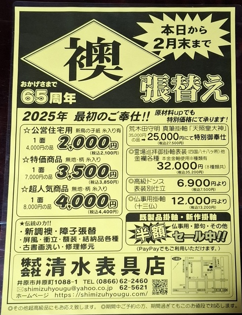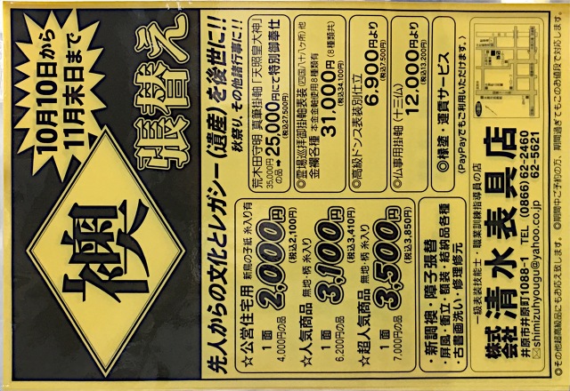 Copyright(C) 岡山県井原市の表具・襖・障子・結納 リフォーム『(株)清水表具店』 All Rights Reserved.