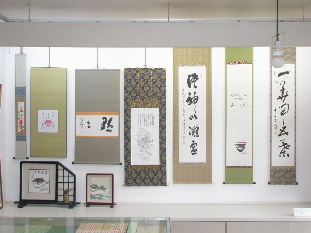 掛軸や屏風、額装、衝立、襖、障子張りなどを行い、巻物や画帖、古書画の修理や修復、茶室の腰張り、本堂の壁張りなども行います。