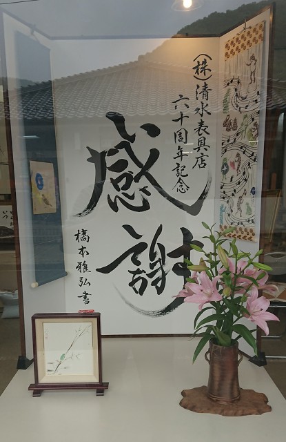 60周年で何か変わった物をと思い作った作品(屏風)と正面飾り。